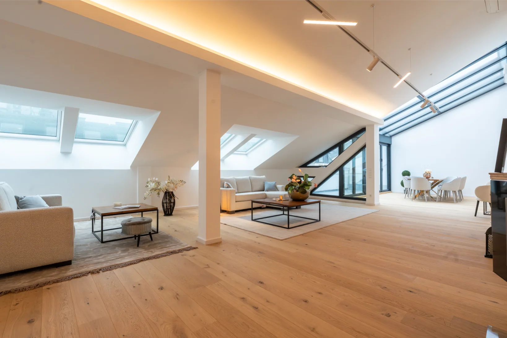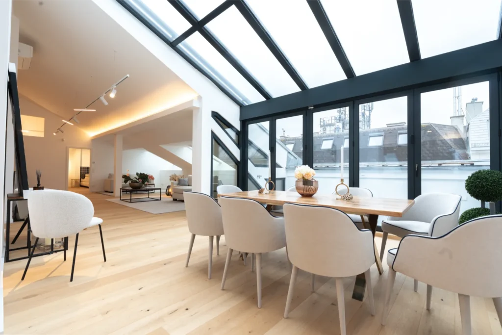 Dieses exklusive Penthouse wurde in den Jahren 2024/2025 komplett neu ausgebaut und vereint modernes Loft-Ambiente mit hochwertigem Wohnkomfort. Der Lift führt Sie direkt vor die Eingangstür. Bereits der großzügige Vorraum vermittelt ein Gefühl von Weite und Eleganz.
